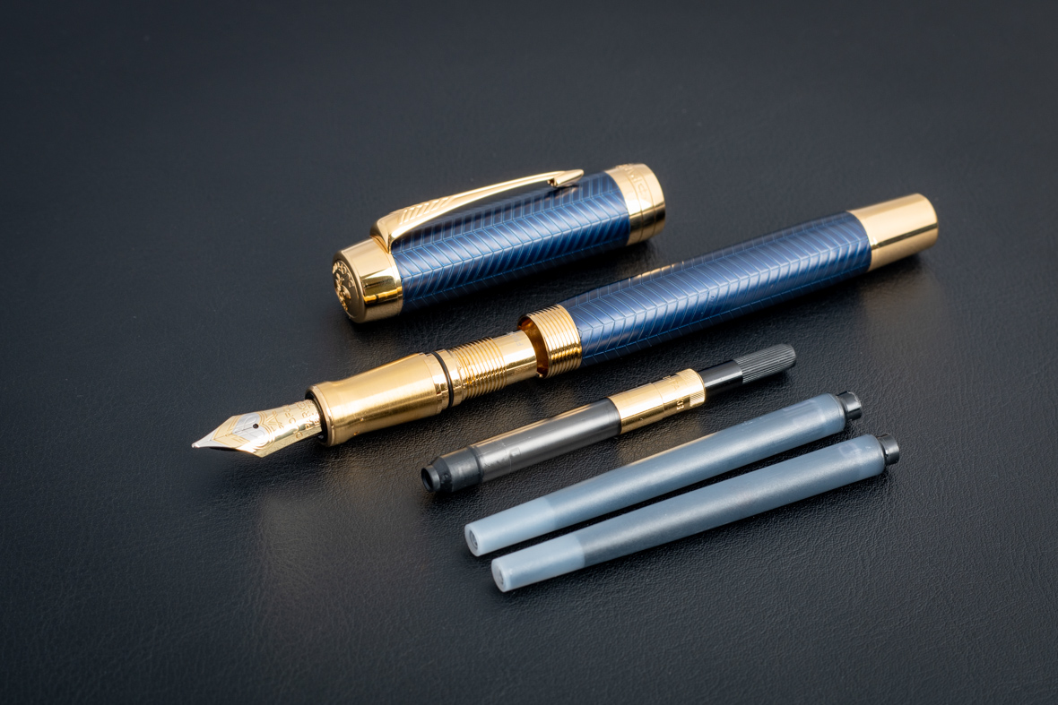 Перьевая ручка Parker Duofold Prestige Centennial Blue Chevron GT (M) от официального дилера Parker в Саранске. Вы можете дополнительно заказать гравировку, которая подчеркнет Вашу оригинальность и придаст памятность статусному подарку. Все ручки Паркер поставляются в фирменном футляре.