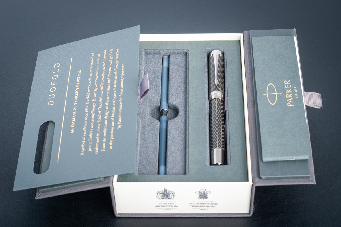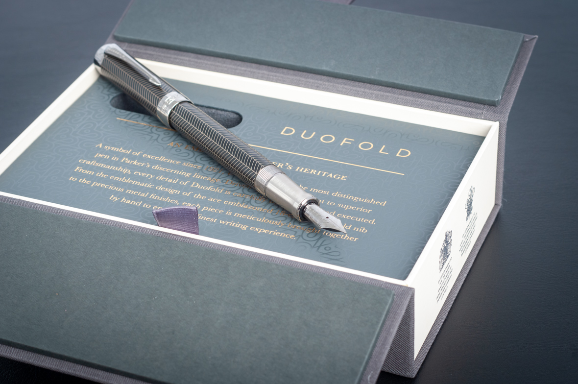 Перьевая ручка Parker Duofold Prestige Centennial Black Chevron CT от официального дилера Parker в Саранске. Вы можете дополнительно заказать гравировку, которая подчеркнет Вашу оригинальность и придаст памятность статусному подарку. Все ручки Паркер поставляются в фирменном футляре.